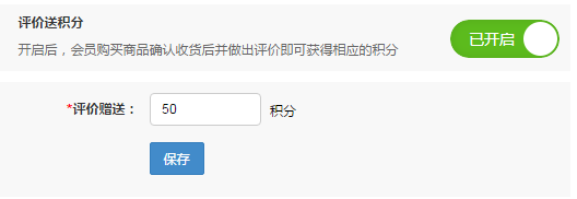 評(píng)價(jià)送積分:開(kāi)啟此功能,買家在確認(rèn)購(gòu)買后并做出相應(yīng)的評(píng)價(jià)可獲得相應(yīng)的積分贈(zèng)送。