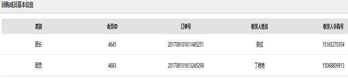⑥ 商家后臺(tái)訂單詳情加一個(gè)團(tuán)購(gòu)成員基本信息(僅小團(tuán)有效)
