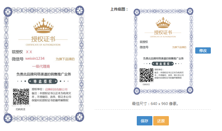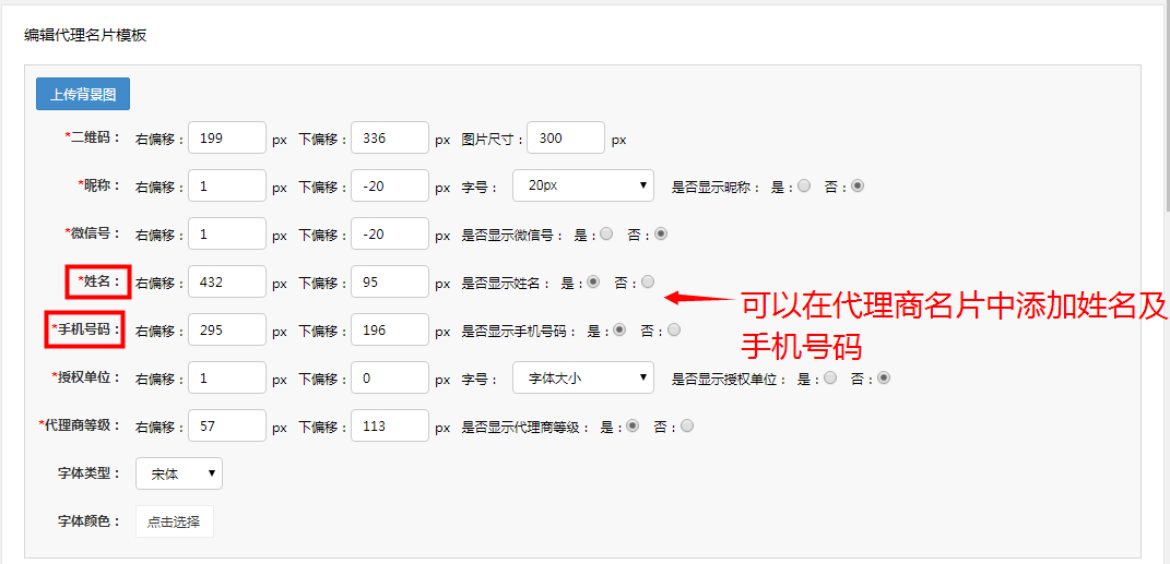 2.代理商名片新增加姓名、手機號、授權(quán)單位、代理商等級等設(shè)置項