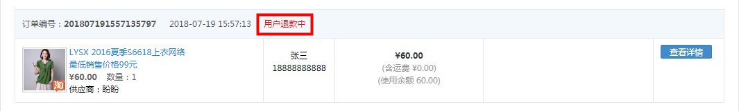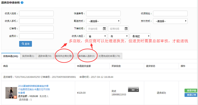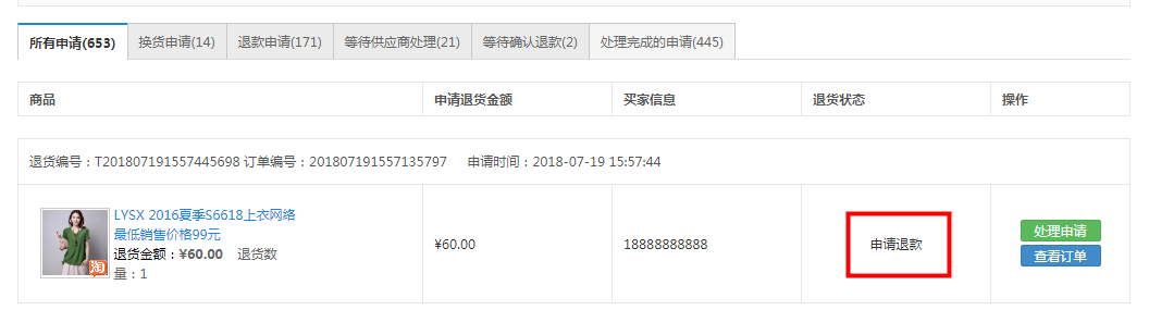 ·所有關于訂單的退換貨都可以在此查看,處理相關的售后問題。如下圖所示: