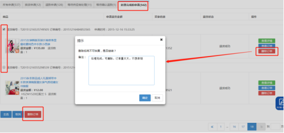 ·退換貨訂單刪除功能