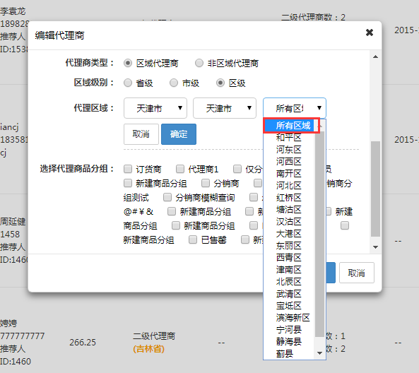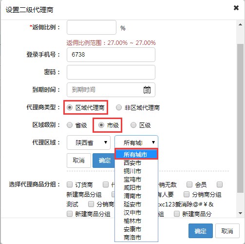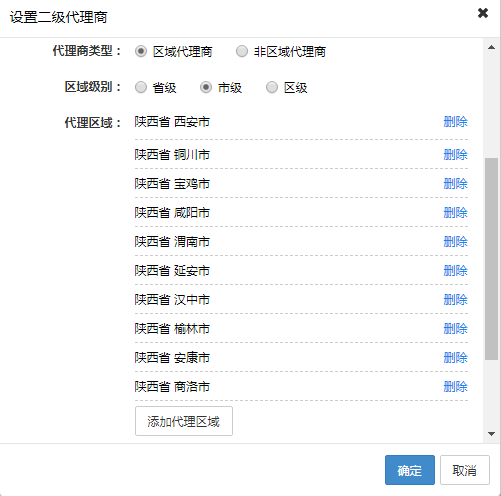 設置代理商的時候,代理區域(市級)可以設置所有城市