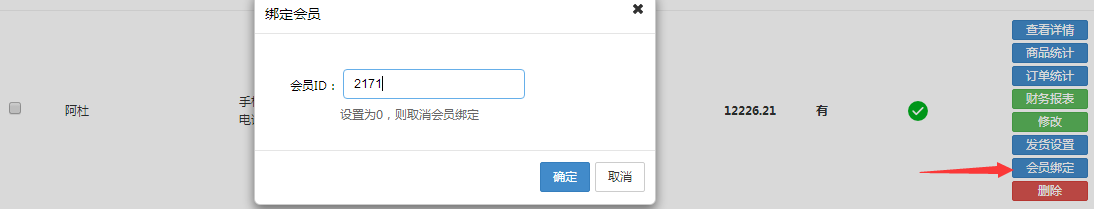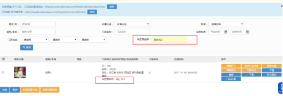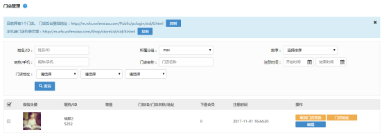 ① 供應商后臺增加門店管理 設置門店: 供應商可以設置總部商城里的會員為自己的門店。也可以通過綁定自己的會員ID,把自己設置為門店。