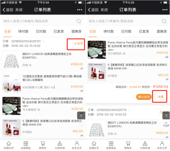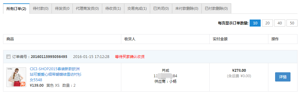 訂單統計:訂單統計與訂單管理相同,在這里可以查看供應商的相關訂單以及訂單的狀態。