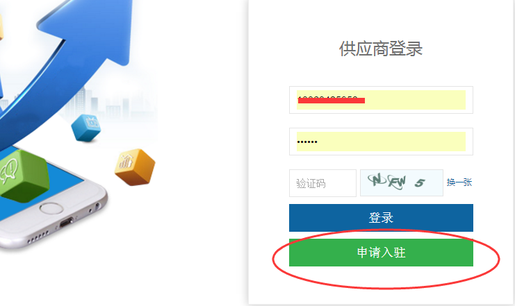 PC端也有申請供應商入駐申請功能,點擊“申請入駐”后,可以提交申請,如下圖所示;