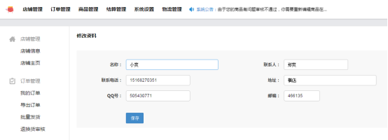 供應商信息可以自己修改:供應商后臺→系統設置:增加“修改資料”,供應商信息可以自己修改,比如更換QQ,就不需要麻煩總部修改了。