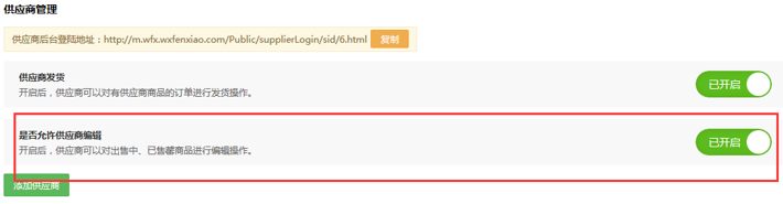 開啟后,供應商可以對出售中、已售罄商品進行編輯操作。