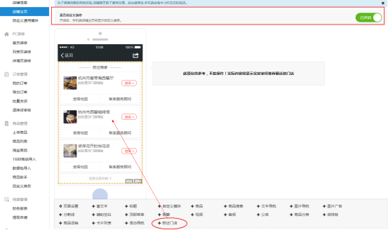 ②供應商后臺:店鋪裝修加一個“附近門店”組件