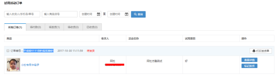 供應商后臺→營銷活動:增加“試用活動訂單”(前提是:允許試用訂單由供應商發貨,否則供應商看不到試用活動訂單)