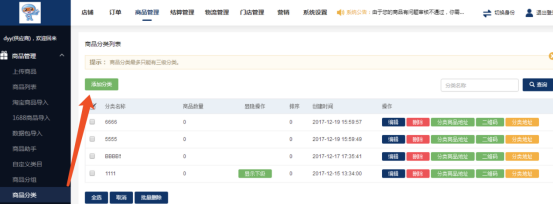 操作步驟: 供應商后臺→商品管理→商品分類:供應商可在自己的后臺編輯自己的商品分類并對商品進行分類。