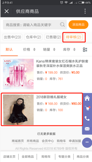 ③“供應商商品”頁面的銷量跟供應商后臺一樣,顯示的是真實銷量;