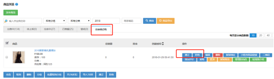 供應商后臺增加復制商品功能,且商品列表區分出售中,倉庫中,已售馨,待審核列表