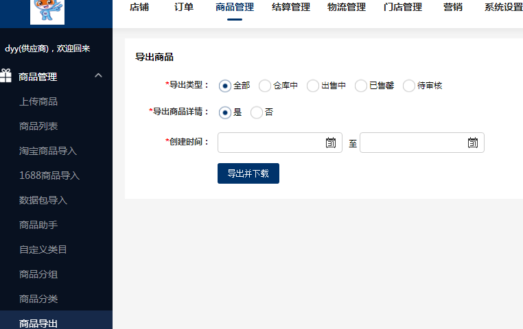 操作步驟:登錄供應商后臺——>商品管理——>商品導出 根據導出類型和創建時間對商品進行導出