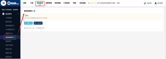 操作步驟:供應商后臺→商品管理:增加“備份商品導入”的欄目,導入的文件需要從微分銷平臺中導入,且只能導入該供應商自己的商品哦。