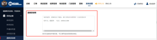 多店版的供應商后臺可以設置“退換貨說明”,便于填寫退換貨地址