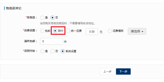 供應商后臺和總部一樣,單品編輯的時候可以選擇運費到付