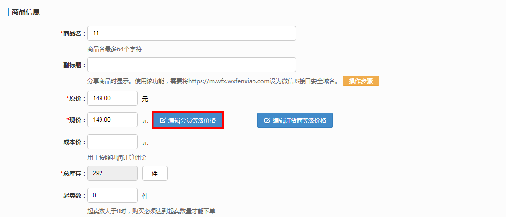 開關關閉后,供應商后臺編輯商品將不顯示以下兩處會員價設置項: