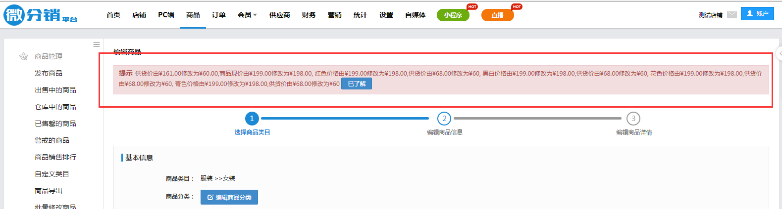 供應(yīng)商更改了現(xiàn)價(jià)、sku價(jià)格也會(huì)顯示提醒信息(供貨價(jià),現(xiàn)價(jià),sku現(xiàn)價(jià),sku供貨價(jià)都有提醒