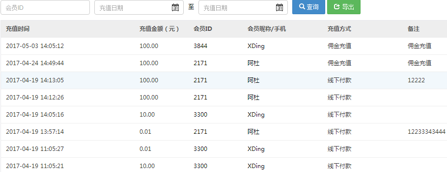 所有的賬號(hào)充值記錄,可以根據(jù)電話(huà)號(hào)碼,用戶(hù)賬號(hào),支付日期進(jìn)行查詢(xún)賬號(hào)充值記錄。
