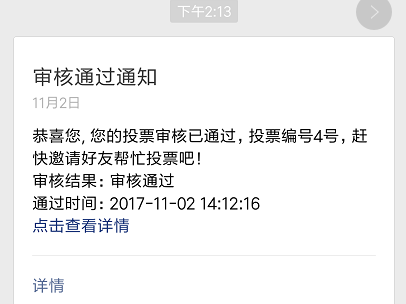 ① 投票審核通過通知:會員報名參加投票選舉,申請后,商家審核通過后,會員就會收到通知,審核被拒絕后,則不會收到通知;
