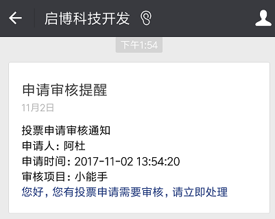 投票申請審核和審核通過消息提醒 操作步驟: 總部后臺→設置→微信設置→消息模板:增加“投票審核通過通知”和“投票申請審核通知”,如下圖: