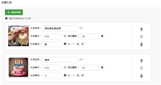 默認關閉;開啟后投票可以進行打賞功能,可以設置投票禮物。