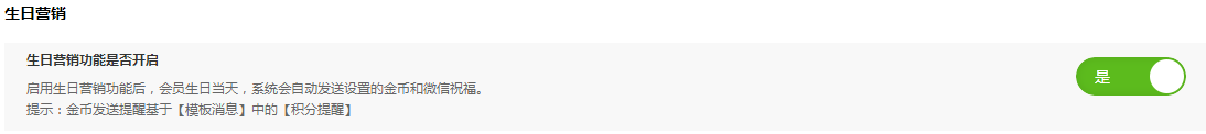 進入后可以設置生日營銷功能是否開啟: