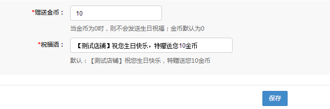啟用生日營銷功能后,會員生日當天,系統會自動發送設置的金幣和微信祝福。 提示:金幣發送提醒基于【模板消息】中的【積分提醒】 生日營銷活動設置如下: