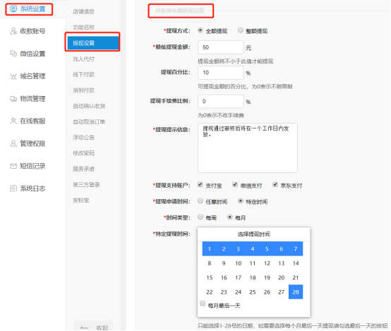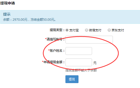 進入供應商后臺-結算管理-申請提現,輸入提現數據
