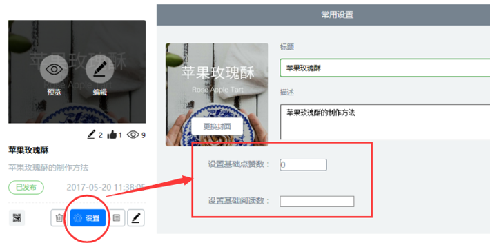 后臺商家設(shè)置基礎(chǔ)點贊數(shù),閱讀數(shù)