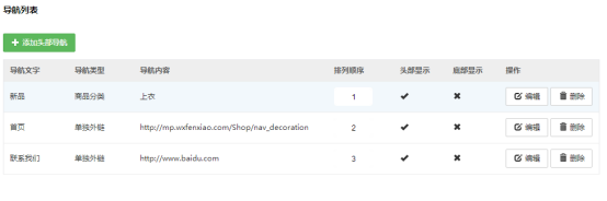 導航菜單添加好以后,返回到菜單列表進行相應的管理。