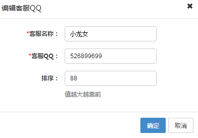 開啟是否顯示PC端客服QQ。此功能僅限于【全網版】 點擊開啟按鈕,進行客服QQ的添加。
