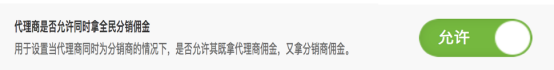 默認是不允許的狀態,開啟后會員既是代理商又是分銷商時,下級及其下單購買商品時,可以同時拿到分銷商傭金和代理商傭金。