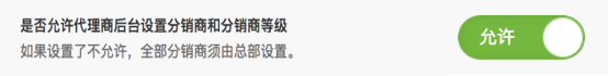 默認是不允許狀態,開啟后,代理商可在他的后臺設置分銷商和分銷商等級。