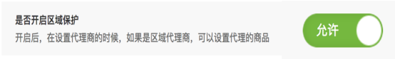 默認是不允許,開啟后,在設置代理商的時候,如果是區域代理商,可以設置代理的商品。( 分組的形式設置,可以選擇多個商品分組)。計算傭金的時候,判斷訂單商品是否為區域代理商代理的商品,如果不是,這該區域代理商傭金會扣除。