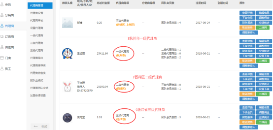 可以設置區域代理商的區域級別(省級、市級、區級)