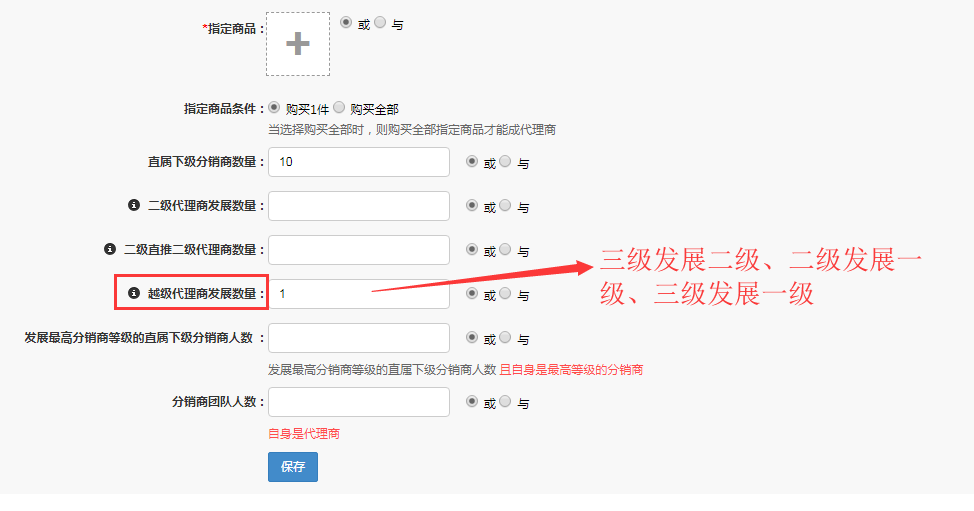 代理商自動升級增加“越級代理商發展數量”的條件