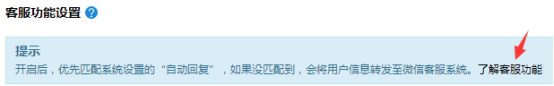 開啟后,優先匹配系統設置的“自動回復”,如果沒匹配到,會將用戶信息轉發至微信多客服系統。