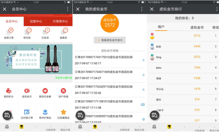 ③會員中心:增加“我的虛擬幣”入口,點擊“我的虛擬幣”,可查看我有多少虛擬幣,和虛擬幣排名(最多顯示前50個);