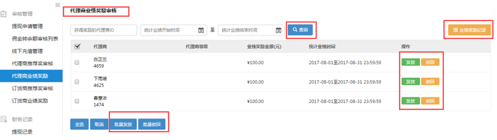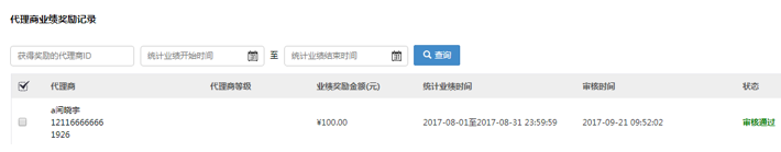 總部后臺→財(cái)務(wù)→審核管理:增加“代理商業(yè)績獎勵”