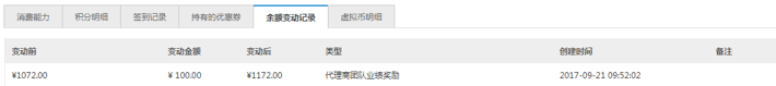 ? 發(fā)放后,獎勵直接發(fā)到代理商的賬戶余額中,在會員詳情中的余額變動中可查到記錄。