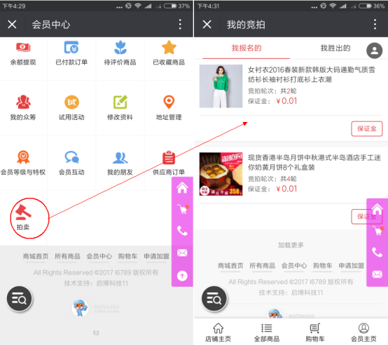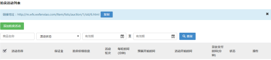 操作步驟: 總部后臺→營銷→吸粉營銷:設(shè)置“拍賣”的功能,會員交納保證金就可以參與拍賣,出價最高者可以獲得拍賣商品。 ① 添加拍賣活動: