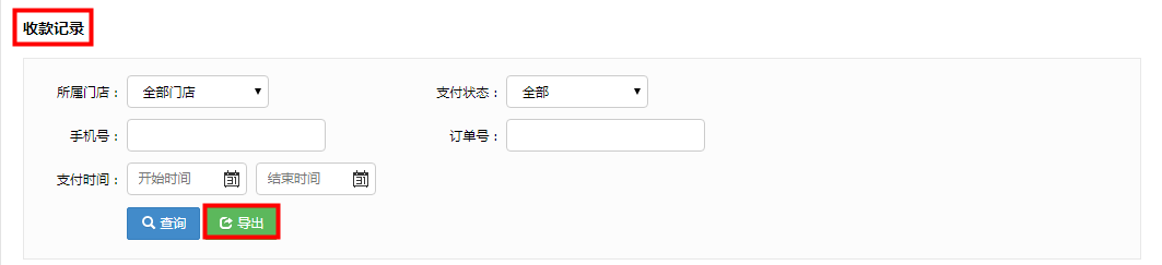 門店收款碼記錄增加導(dǎo)出功能,可根據(jù)不同的查詢條件導(dǎo)出當(dāng)前查詢的內(nèi)容。