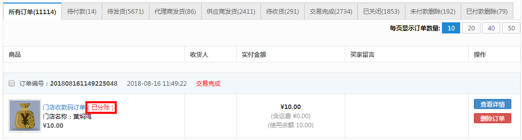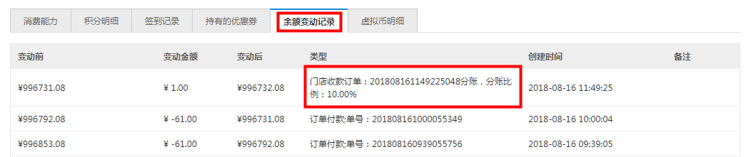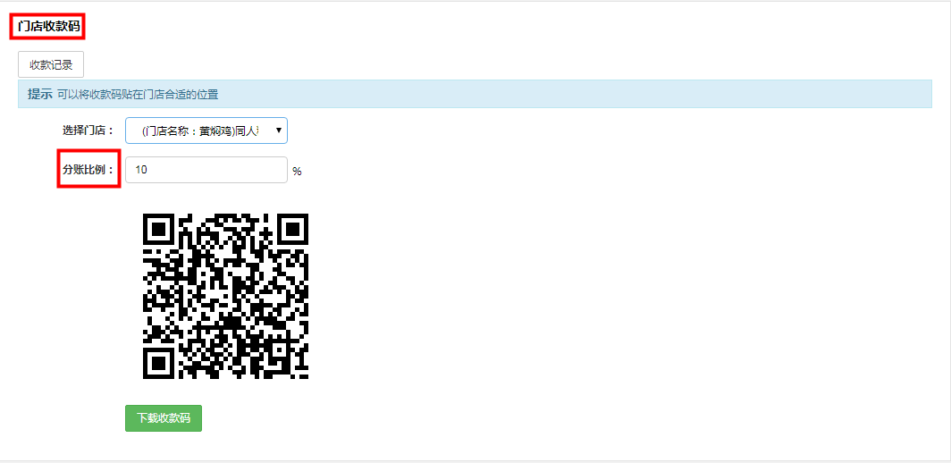 門店收款碼可以為每個(gè)門店設(shè)置分賬比例,默認(rèn)為0。設(shè)置分賬的門店生成的訂單都會(huì)顯示相應(yīng)分賬記錄,同時(shí)分賬的金額會(huì)返還給門店余額(會(huì)員余額)。