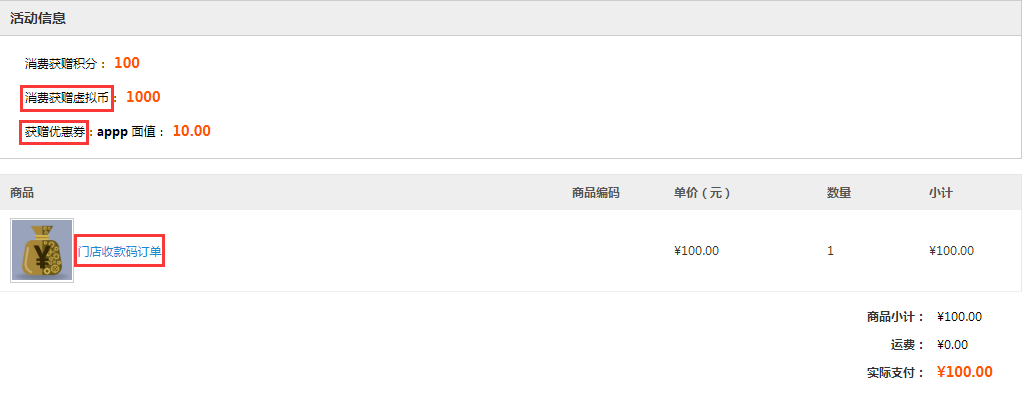 門店收款碼訂單與其他訂單一樣,消費(fèi)一定金額會(huì)贈(zèng)送虛擬幣及優(yōu)惠券