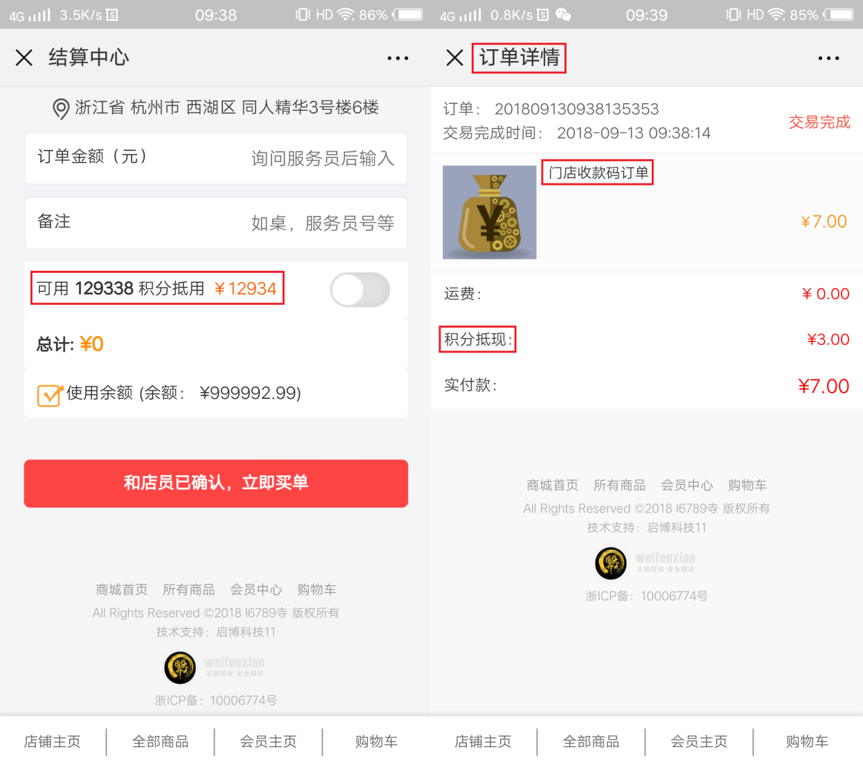 掃門店收款碼的訂單,支持使用積分抵現(xiàn)