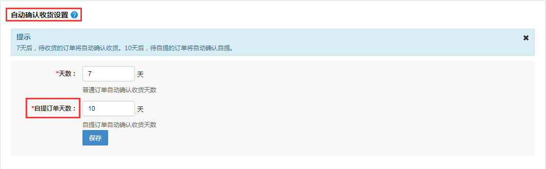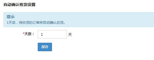 自動確認收貨設置:可以設置代收貨的的訂單在多少天之內自動變成確認收貨。