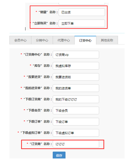 功能名稱設置增加“訂貨中心”的功能名稱自定義設置
