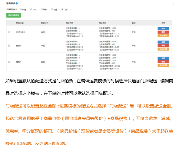 運(yùn)費(fèi)模板可以設(shè)置默認(rèn)的配送方式,所有的運(yùn)費(fèi)模板都可以在此處進(jìn)行查看、修改、添加與刪除。