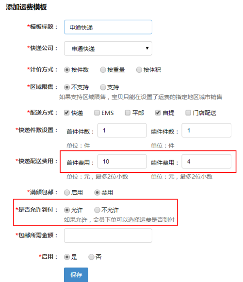 【新增】運(yùn)費(fèi)模板可以設(shè)置運(yùn)費(fèi)是否到付